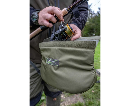 Dit eenvoudige reeltasje is geschikt voor alle soorten reels en heeft een eenvoudige klittenbandsluiting voor bevestiging aan uw hengel. Kan ook apart worden gebruikt voor opslag. Het Supa Lite materiaal maakt het zeer licht, waterdicht en sterk. Afmetingen: 34 x 20 x 12. 150D PU flex stof.